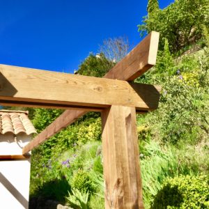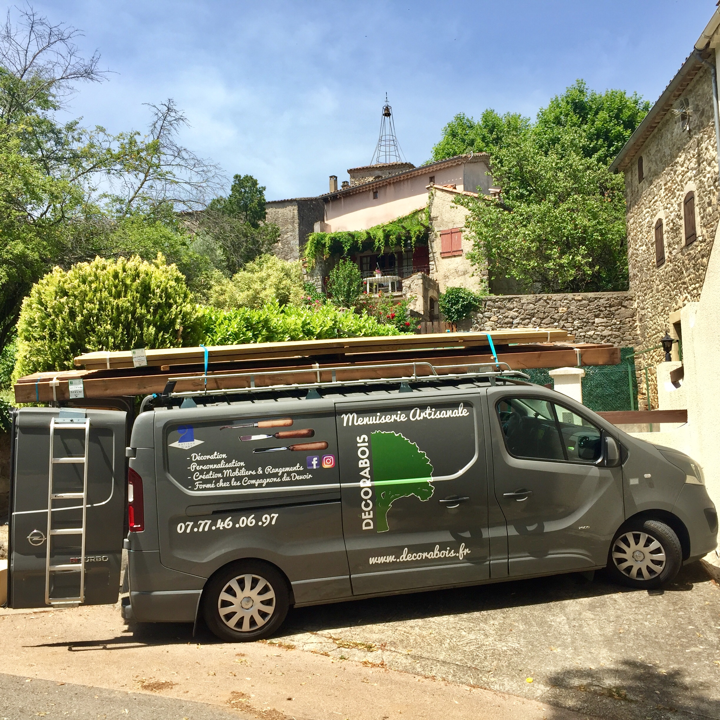 Fabrication et pose d'une terrasse en bois pour un futur artisan glacier à Mialet.