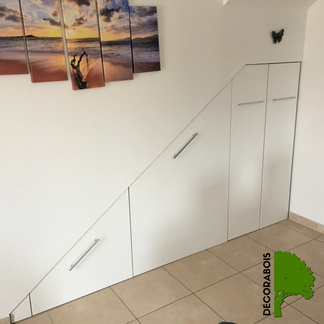 Etude, fabrication et pose d'un placard sous pente de toit.
