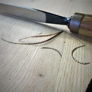 Traçage de l’insert en noyer (pupille de l’ours) pour défonçage